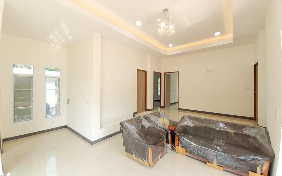 Rumah elegan ini mempunyai kolam renang di taman balik dengan dikelilingi pagar kayu serta samping kolam pula berlantai kayu. Pemilihan corak pada dindingnya lumayan simpel ialah putih, tetapi tampilan corak tersebut memeberi kesan elok. Lantai rumah dilapisi oleh marmer yang nampak elegan.